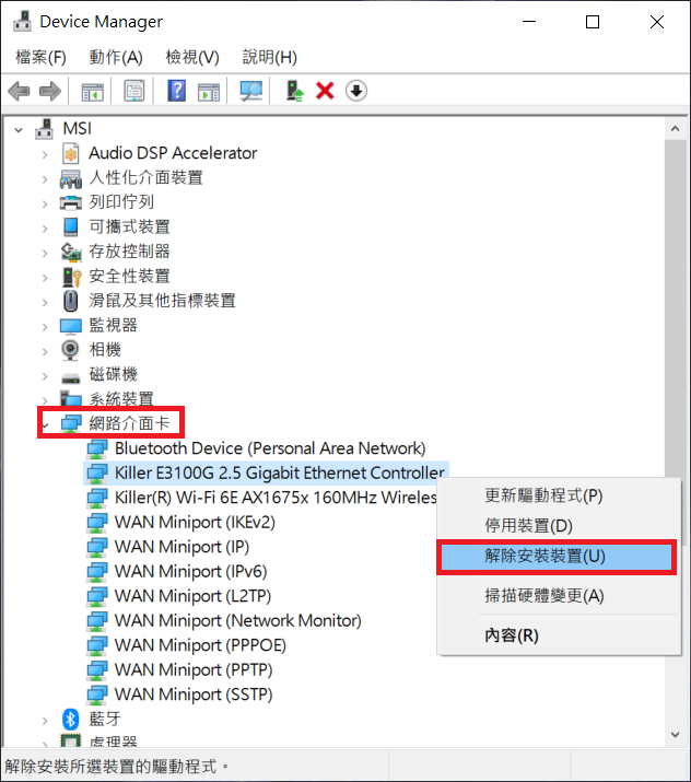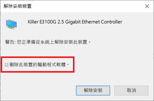 e. 如果Killer装置仍有显示驱动版本,请参考以下步骤执行驱动程序的完整移除