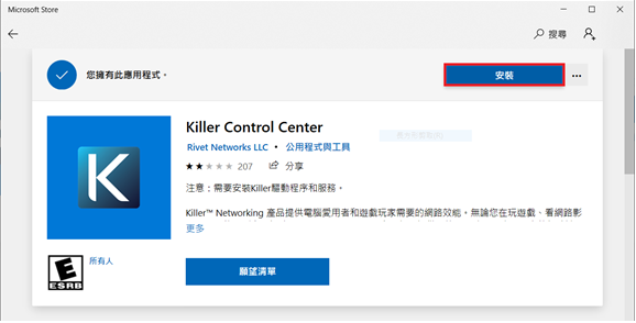如果无法透过以上方式下载Killer Control Center (UWP),请透过此微软商店下载连结取得Killer Control Center (UWP)