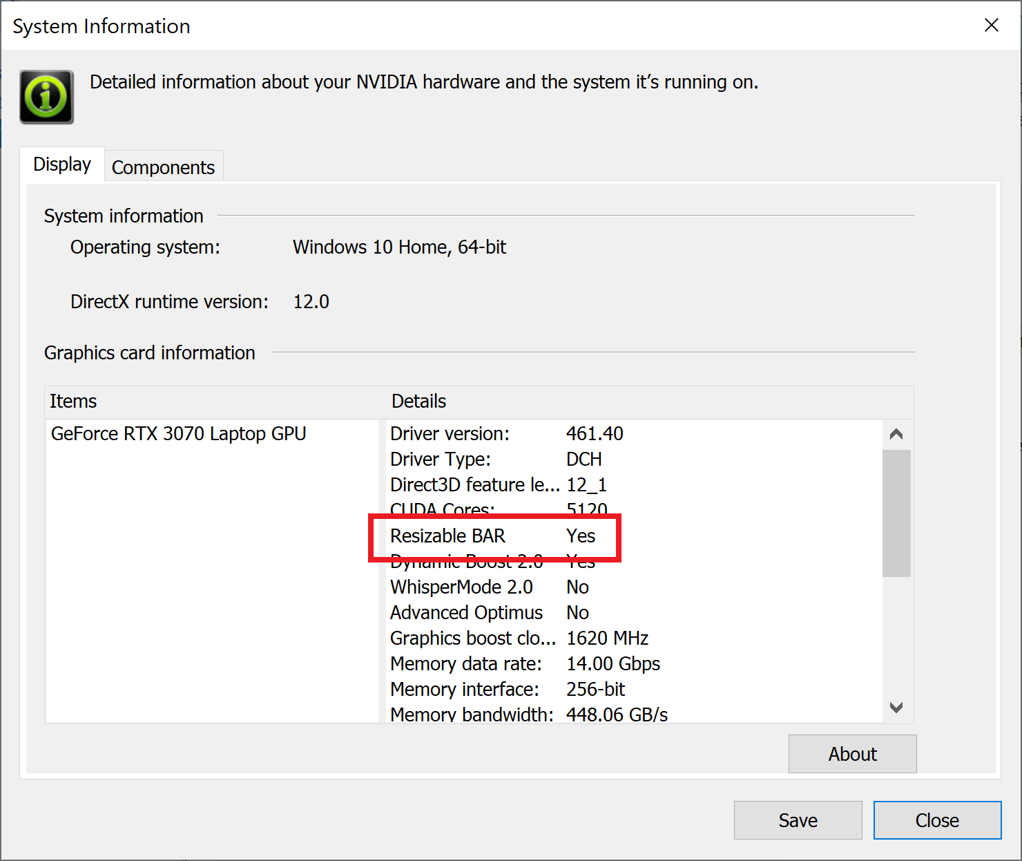 请参照Resizable BAR支持说明来取得兼容的BIOS、VBIOS、和NVIDIA显示驱动版本(或更新版本)。
