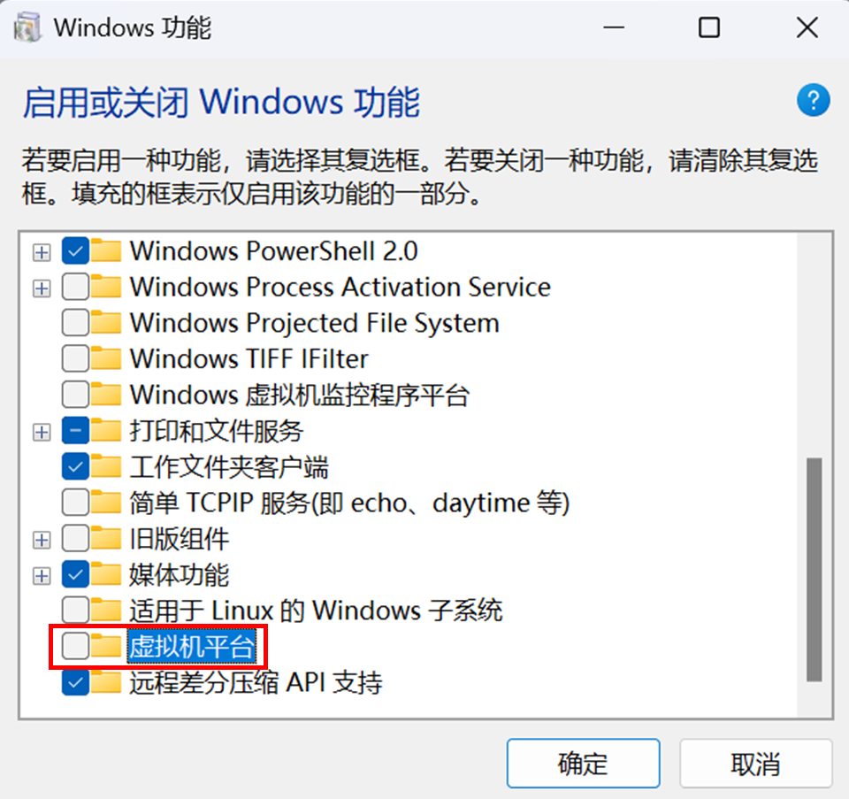 2. 关闭「虚拟机平台」并按「确定」套用更改,然后重新启动系统以使更改生效。
