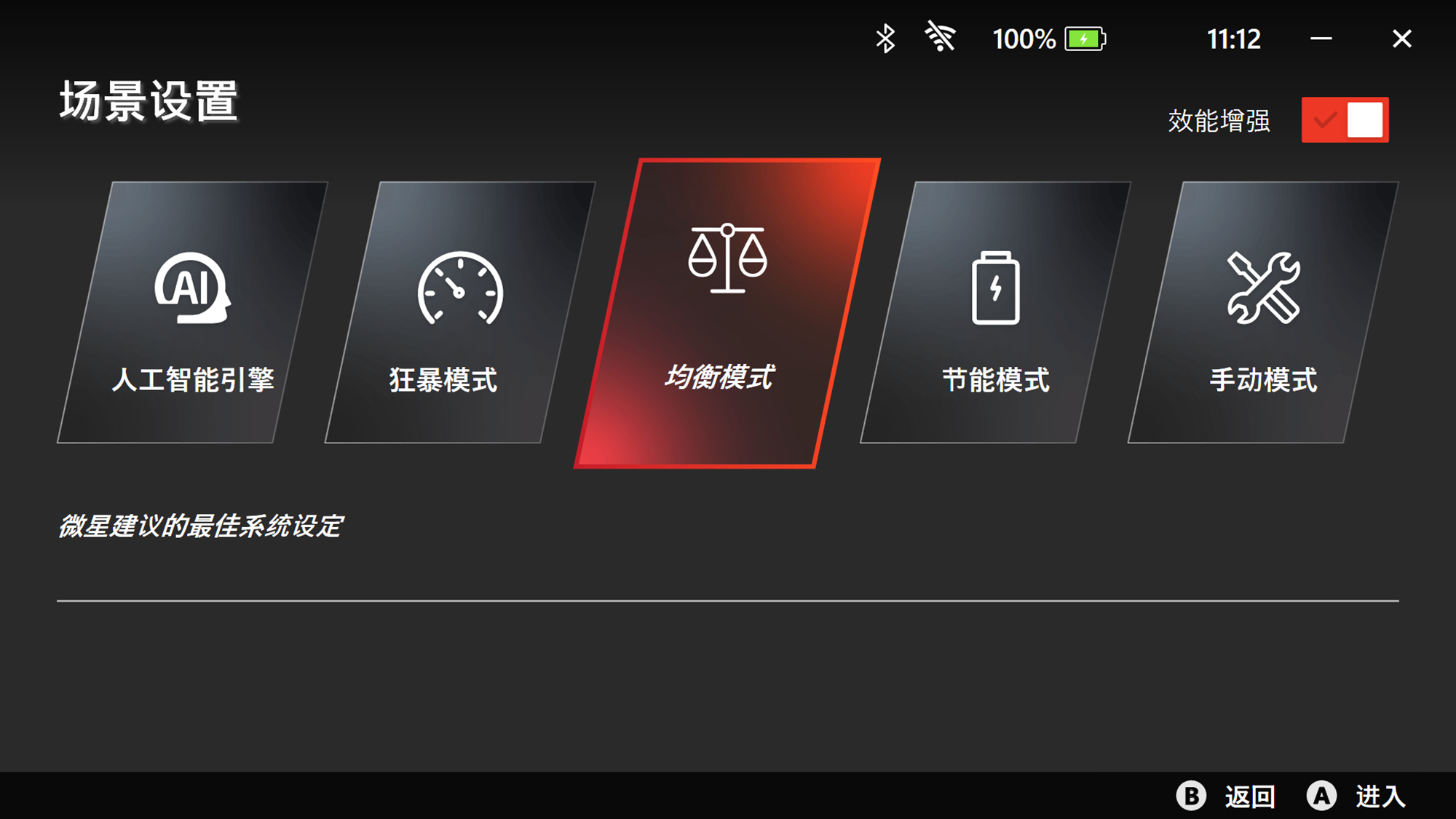 *注2:以下设置仅适用于 MSI Claw A1M 和 Center M v1.0 版本。