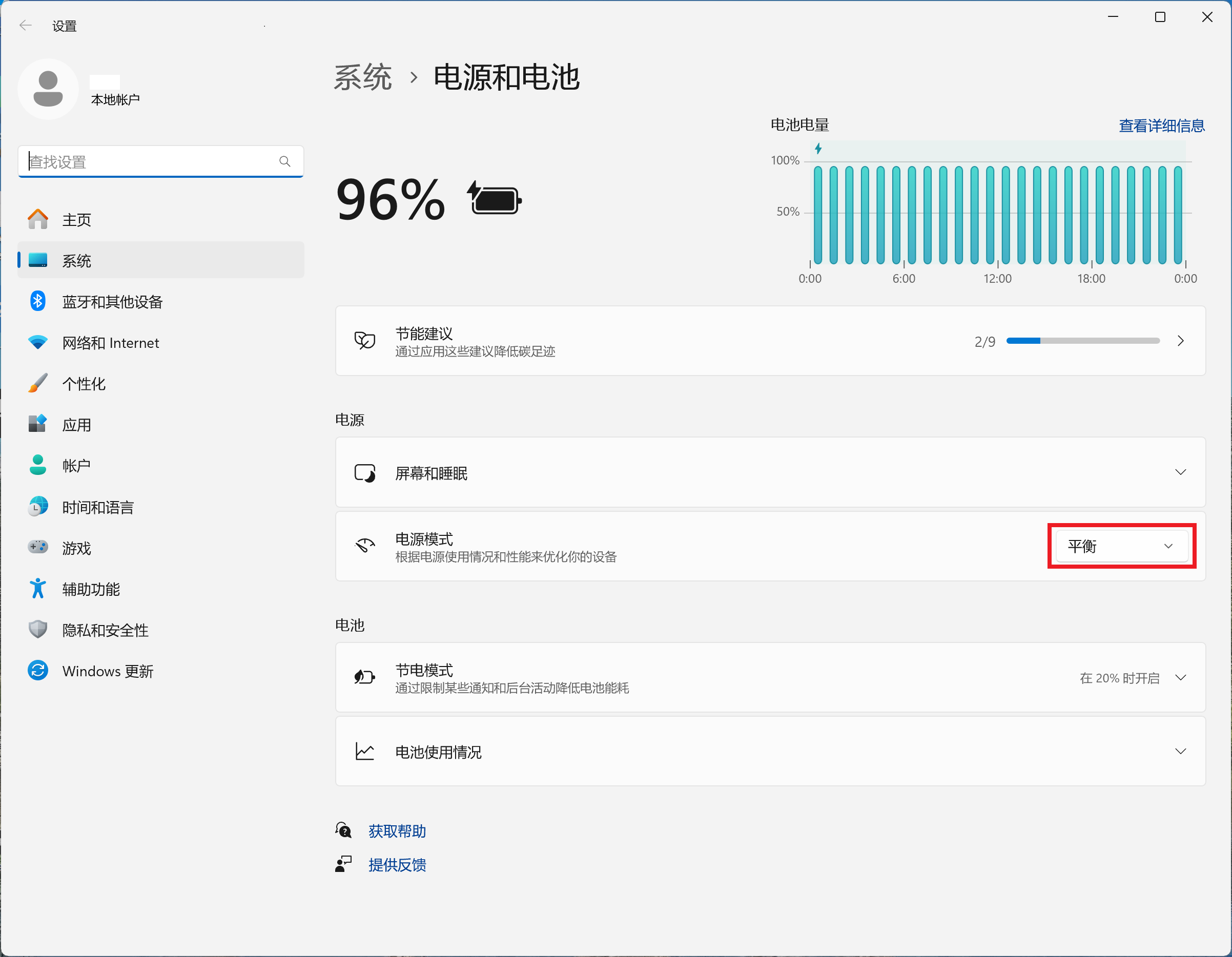 2. 将 Windows 11 电源模式保持在「平衡」。