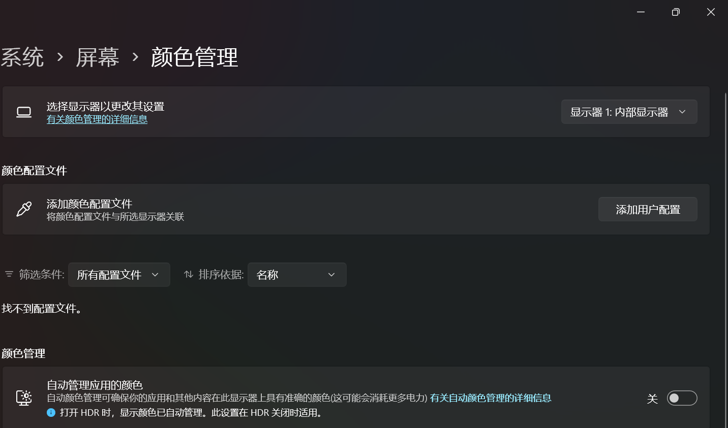 若操作系统中未出现应用程序的自动管理颜色的选项