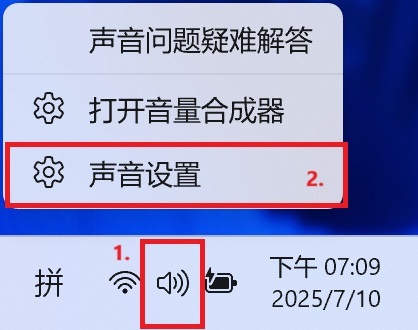 1. 右键单击位于通知区域的扬声器图标。