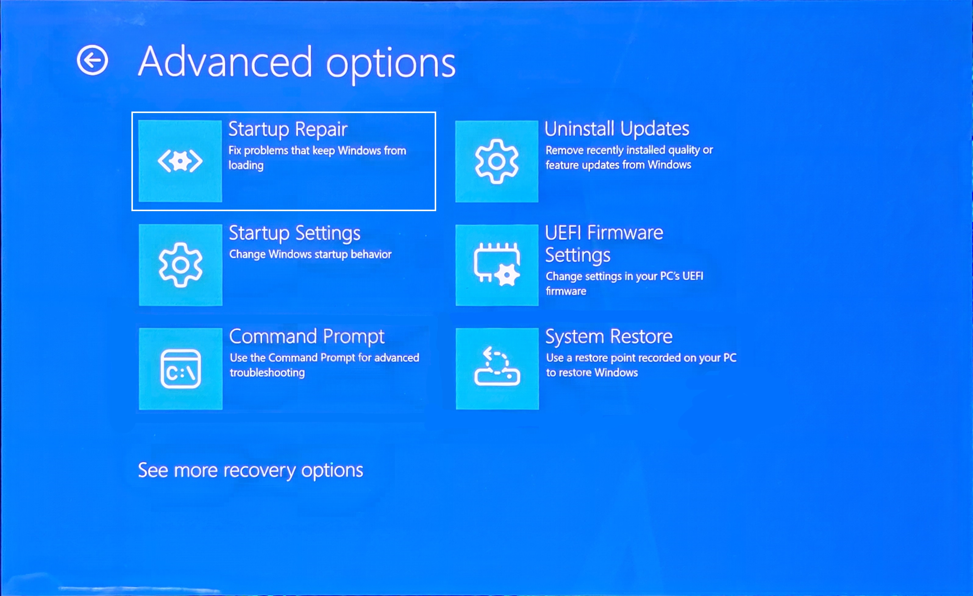 (2) 至Troubleshoot > Advanced options > Startup repair