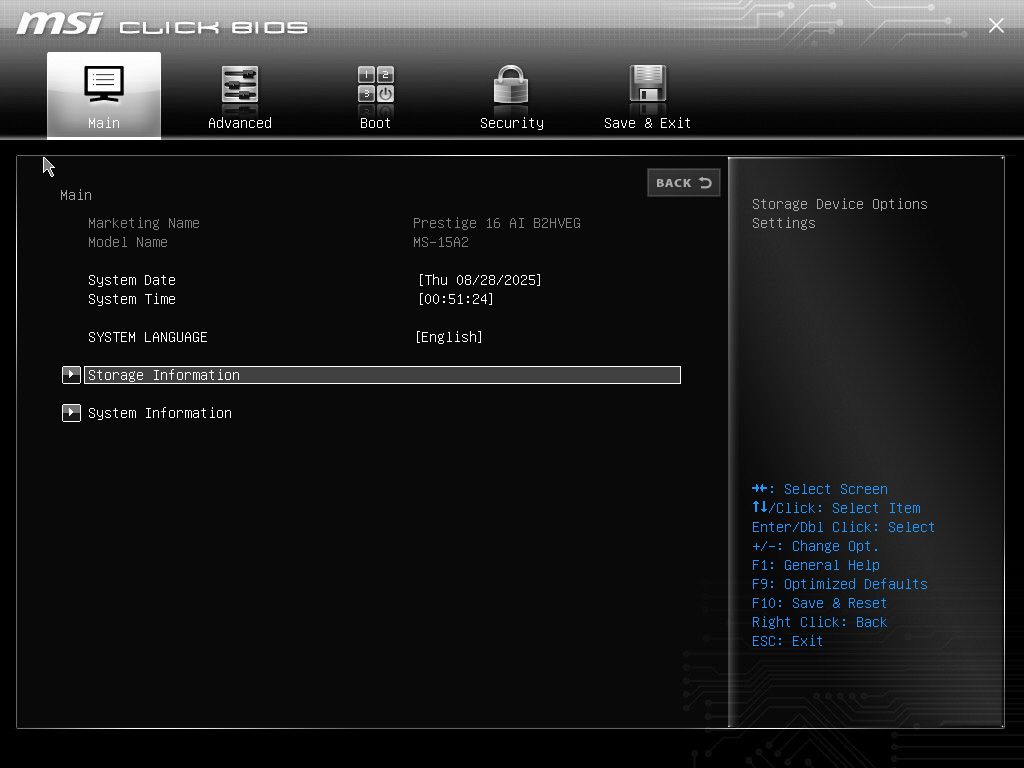 (2) 请进入BIOS选单 > 储存装置信息并确认BIOS是否有辨识到固态硬盘