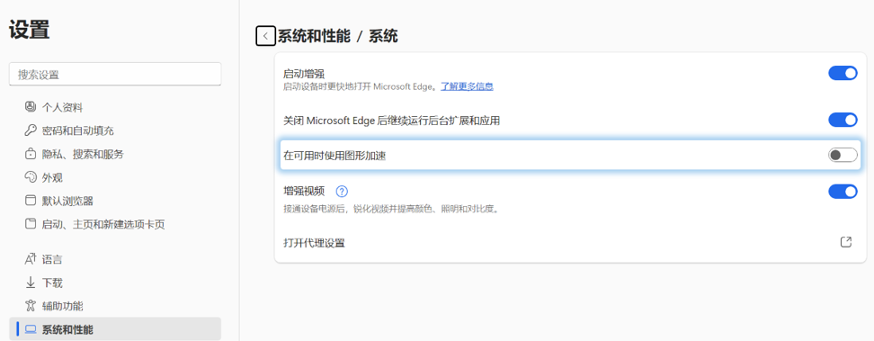 在浏览器或应用程序中尝试关闭「硬件加速」功能