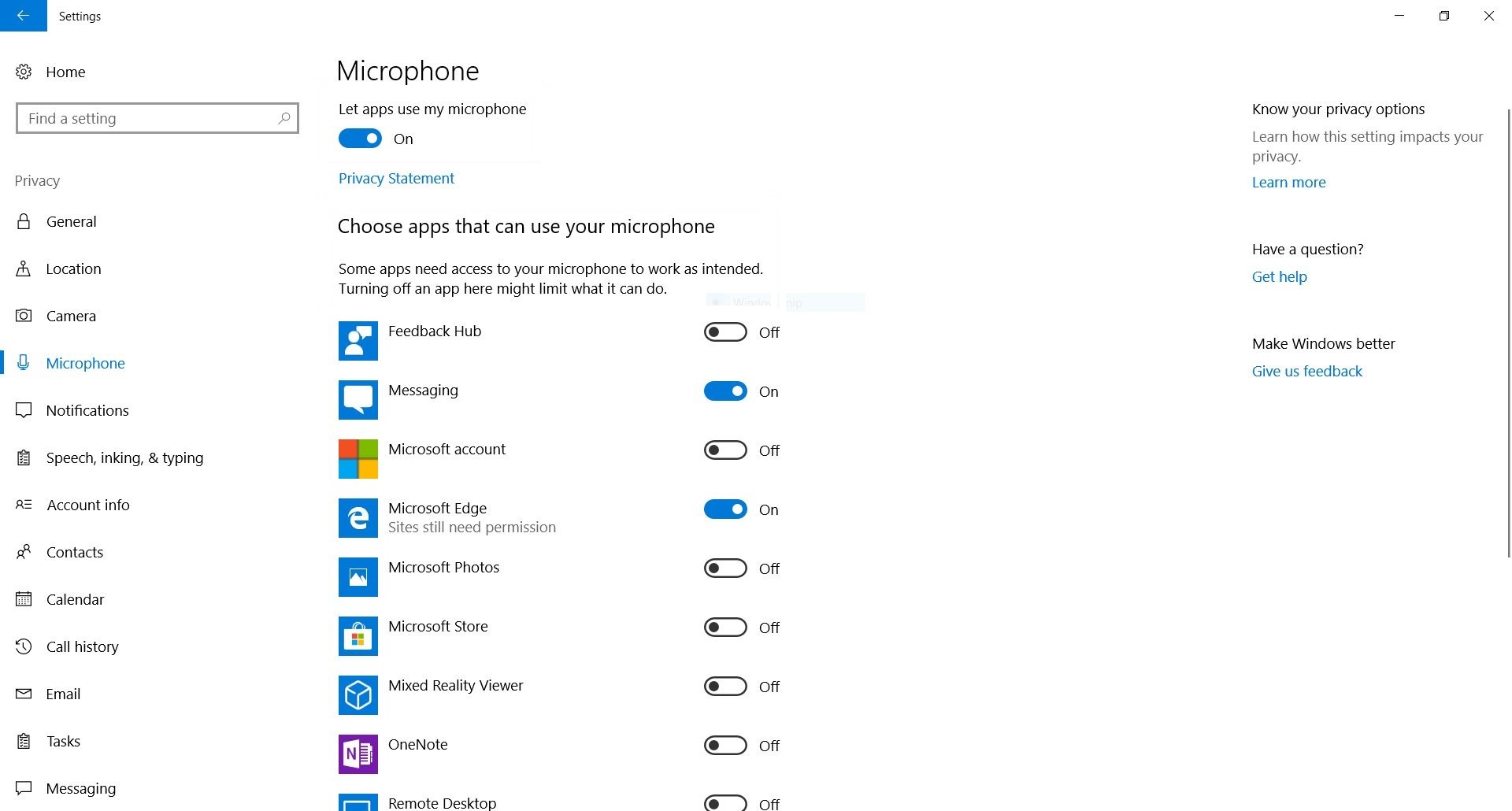 使用者在进行Windows 10 版本1803 四月更新后可能遭遇到麦克风或相机无法使用的问题。造成的原因为隐私设定中麦克风或相机的权限遭到关闭。