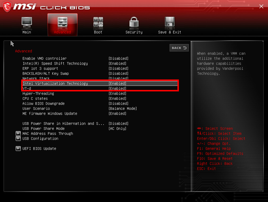 MSI笔电预设启用英特尔虚拟化技术,本文章包含如何确认虚拟化相关设定的指南。