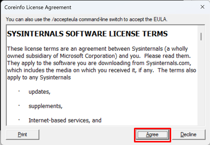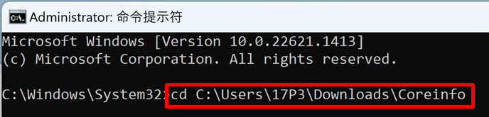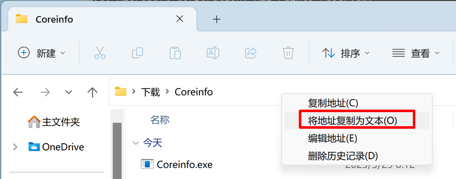 - 在文件资源管理器中复制 Coreinfo64.exe 的位置。
