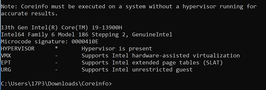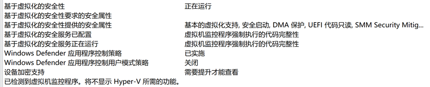 - 虚拟机监控程序 > 已检测到虚拟机监控程序。