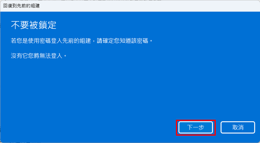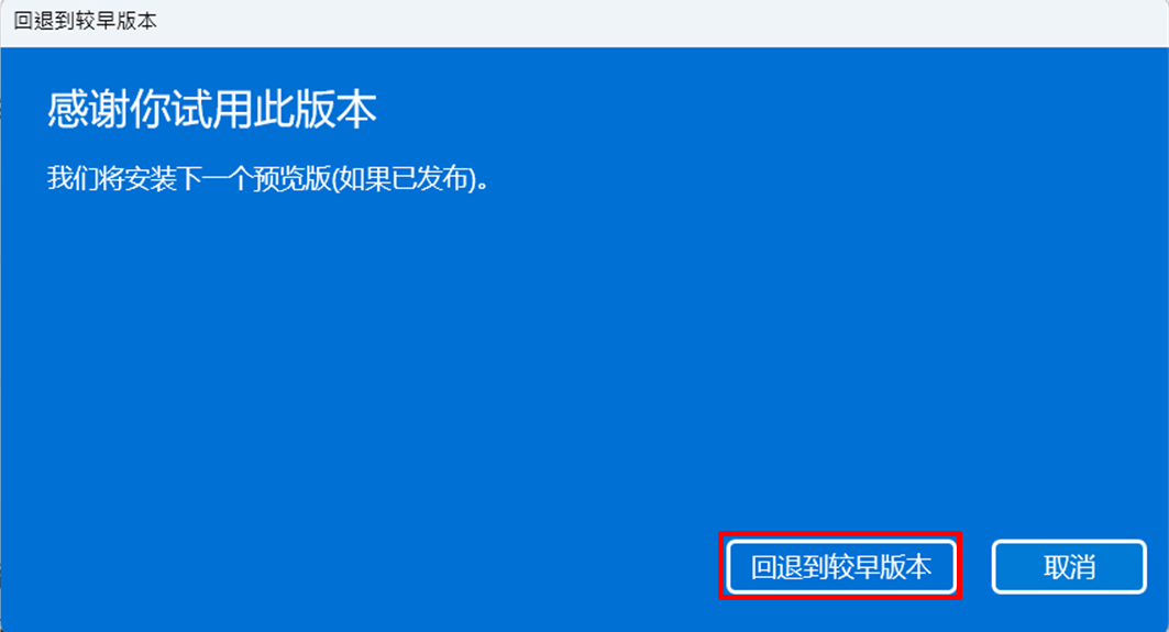 7. 依照画面上的画面往下执行,最后点选回退到较早版本。