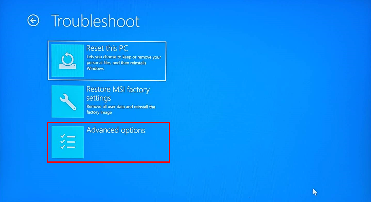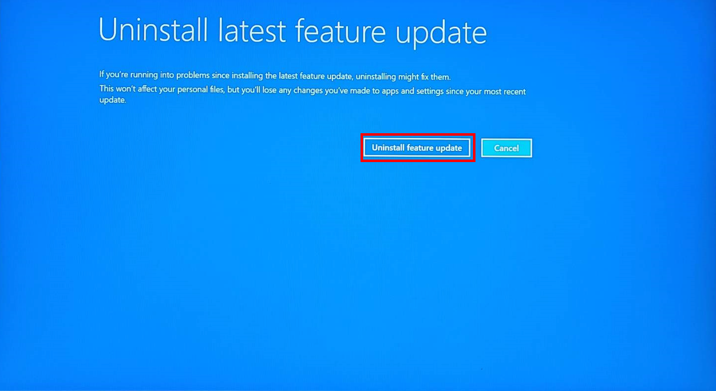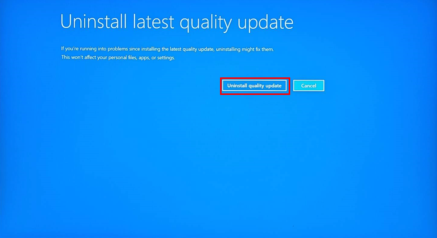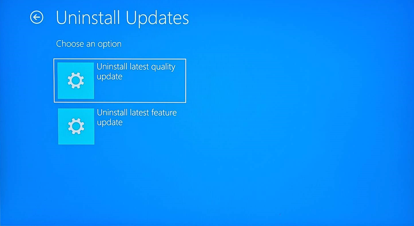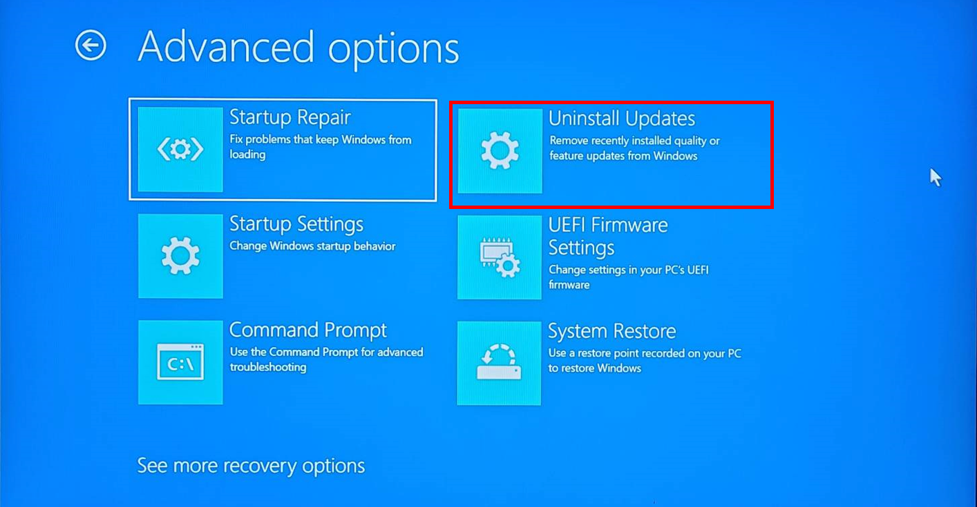 5. 选择 Troubleshoot > Advanced Options > Uninstall Updates.