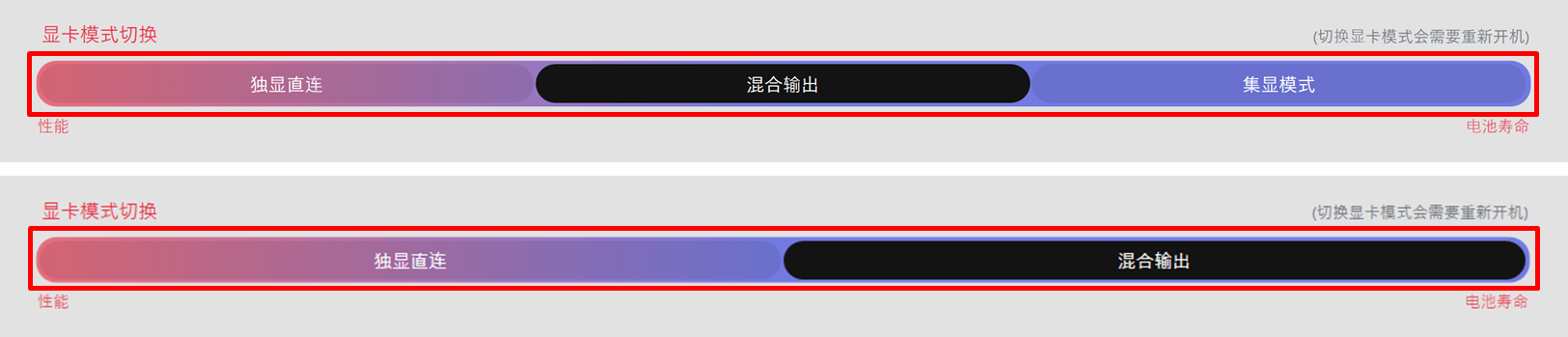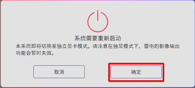 注:在切换显卡模式后务必将机台重启以正确套用设置。