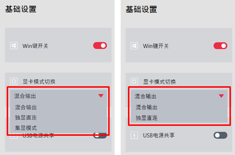 4. 点击“显卡模式切换”的下拉菜单,然后选择所需的显卡模式。