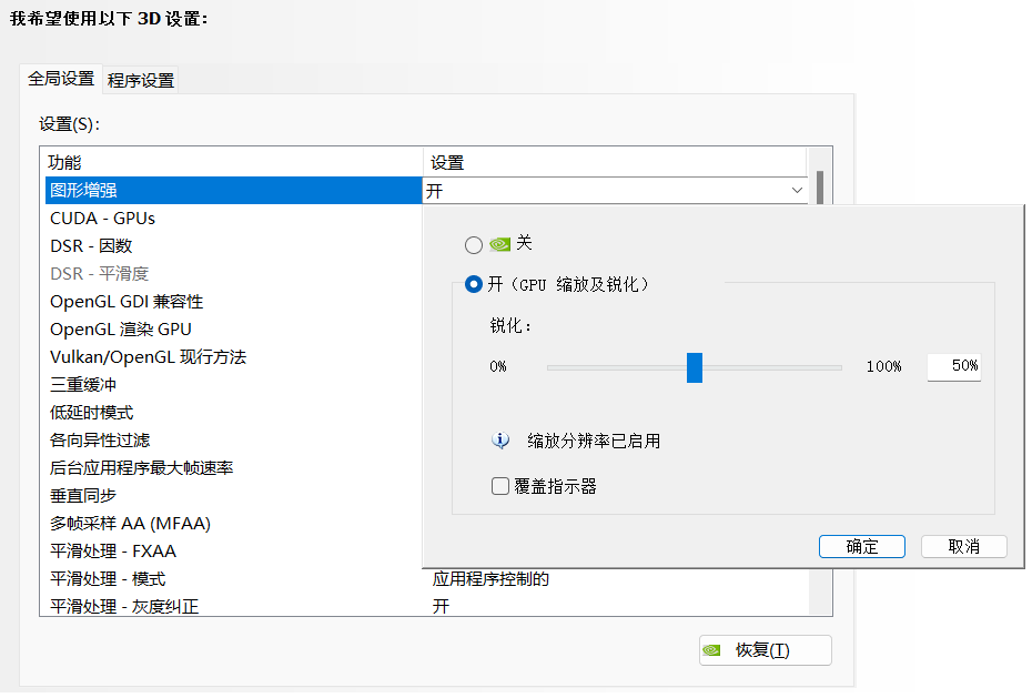 桌面上点选鼠标右键选择开启NVIDIA控制面板,切换至"管理3D设置"页面后调整"影像增强缩放"选项为"开启"
