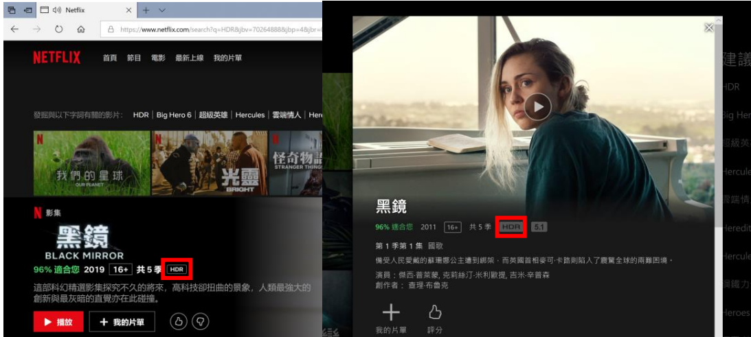 - 選擇支援HDR品質的視訊,享受HDR視訊。