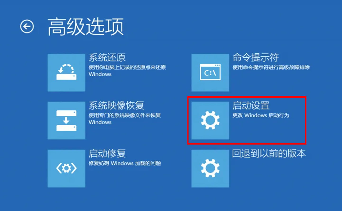1-2. 选择「疑难解答」 > 「高级选项」 > 「启动设置」。