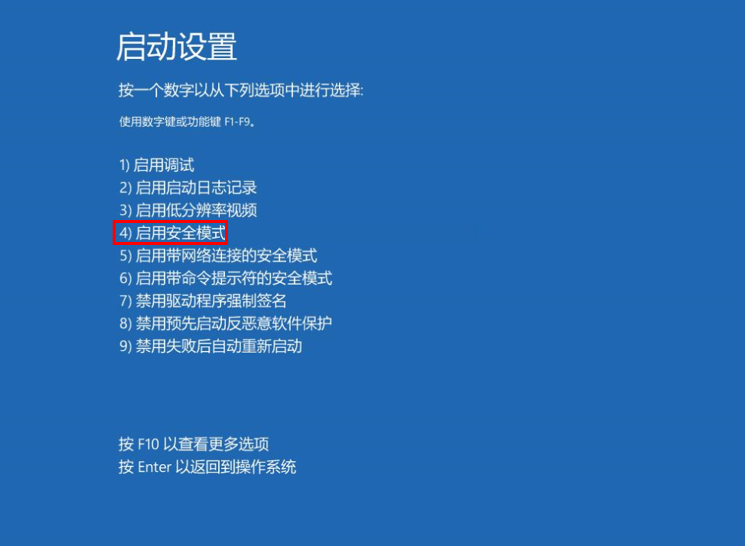 1-4. 当系统重启,进入开机设定后,按下[4] 开启安全模式。