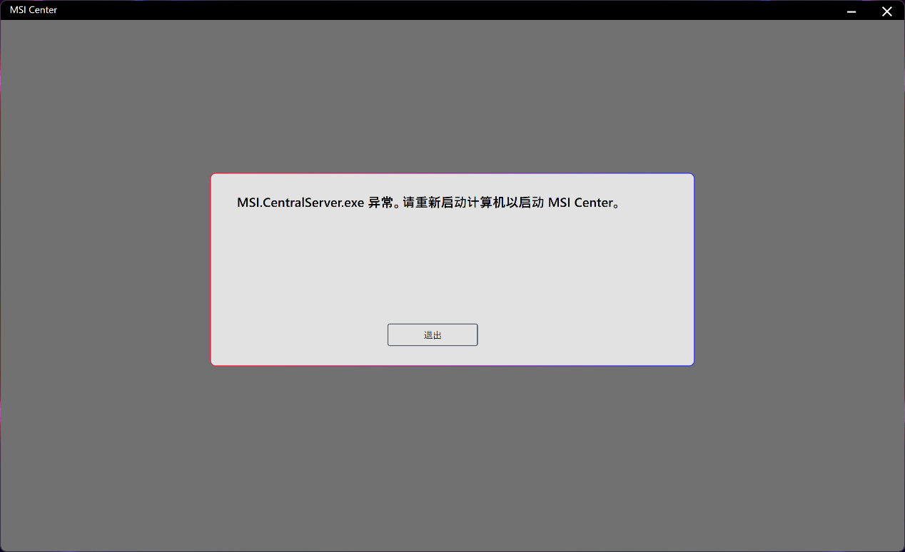 [问题排除] 无法正确启动MSI Center,出现错误提示MSI.CentralServer.exe异常