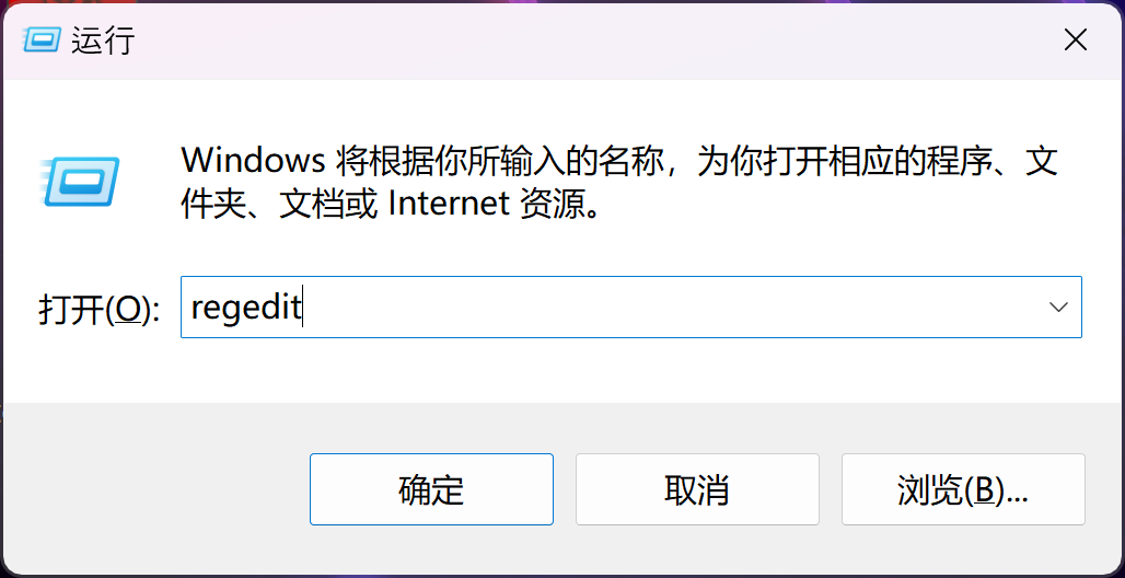 按下Win+R键,输入 regedit,按下Enter