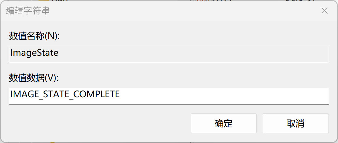 若因故自行安装或全新安装Windows系统时遇到此问题,请优先确认注册表中Image State状态值: