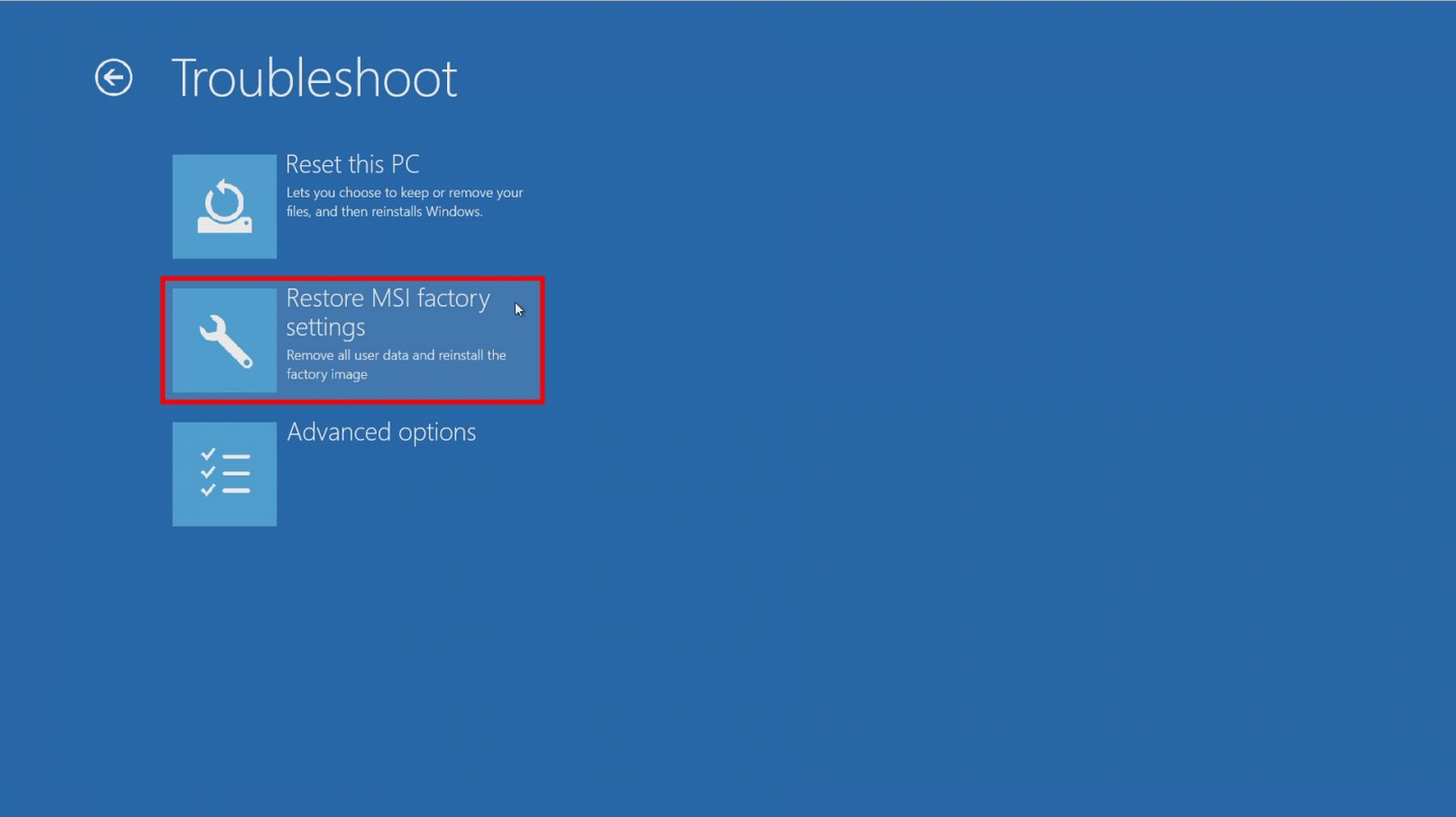 3.选择「Restore MSI factory settings」进入下一步。