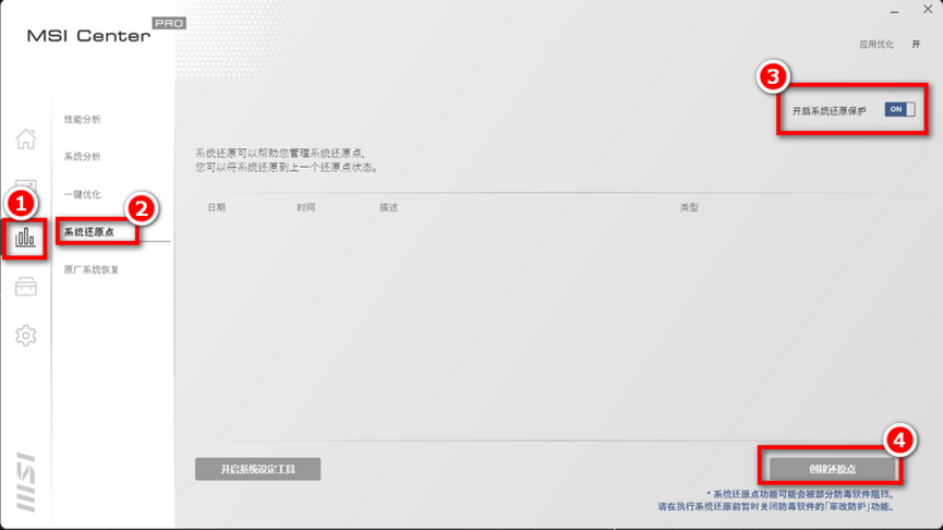 1-4点击「创建还原点」