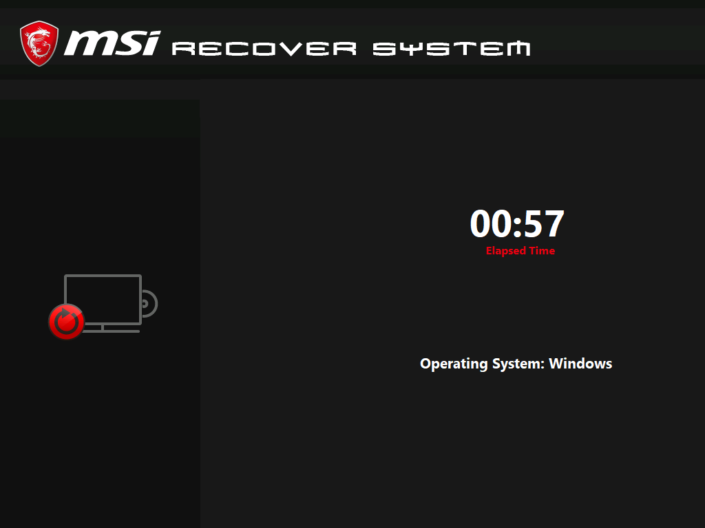 1. 接入电源供应器,按下电源键启动计算机,当看到MSI 图标后,连续敲击键盘上的F3键进入系统还原画面