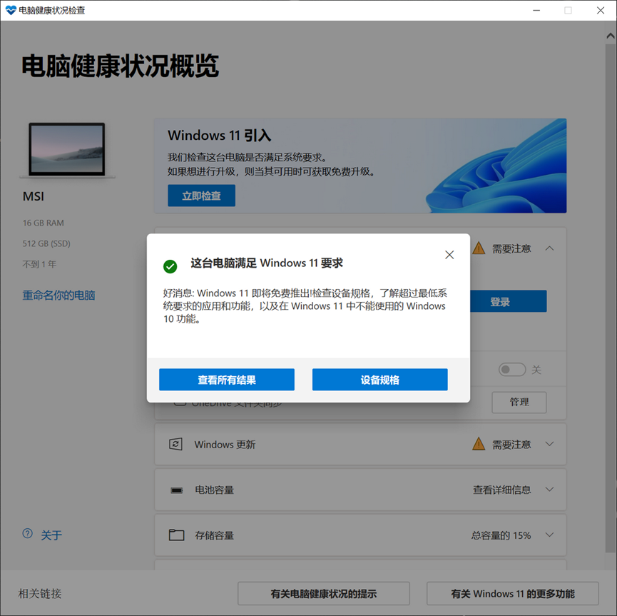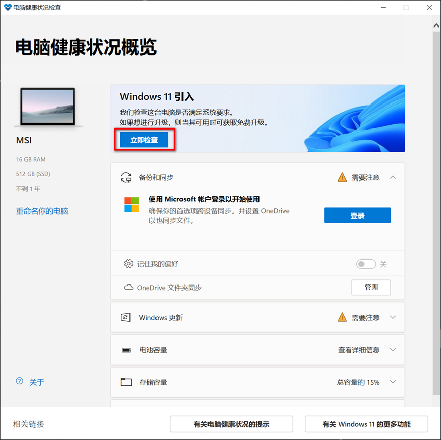 若笔记本电脑型号未显示于支持列表中,请依照以下步骤执行微软电脑健康状况检查应用以确认系统兼容性。